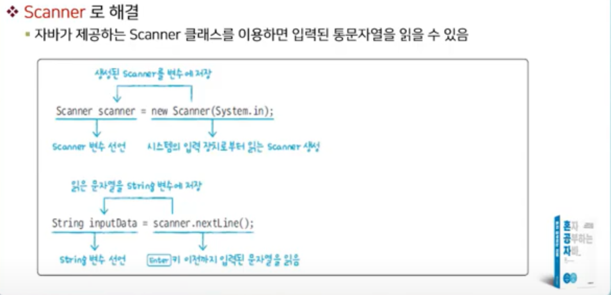 이전은 System.in.read() 한 글자를 입력받는 것을 했다.