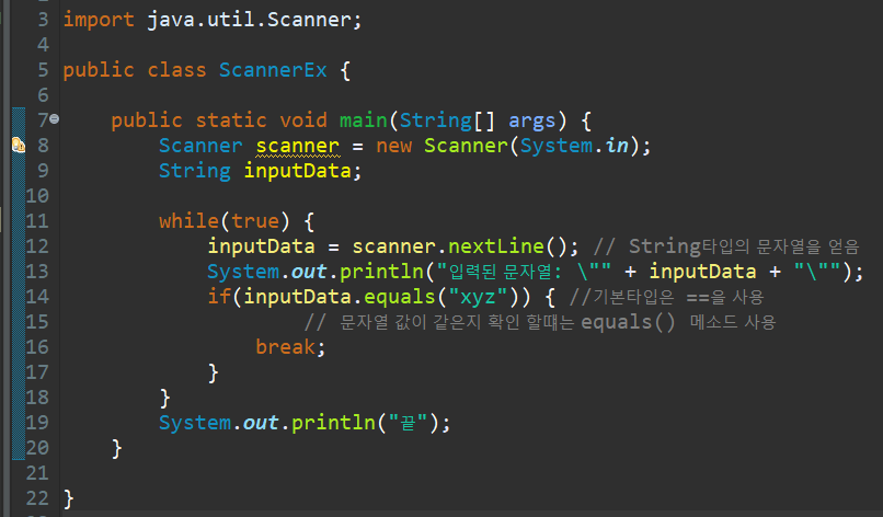 Scanner 클래스는 아래와 같이 작성할 수 있다.