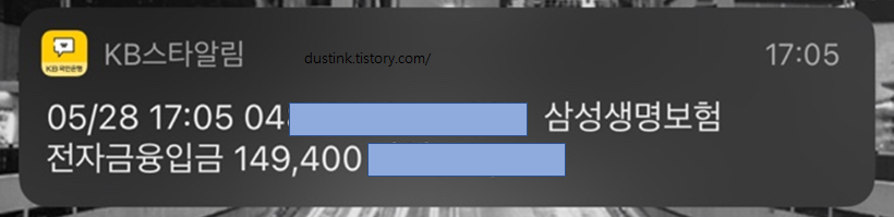 접수할때 기재해둔 은행계좌로 보험 지급금이 입금 되었다.