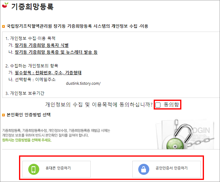 1. 국립장기조직혈액관리원에 접속한다. (사진을 누르면 사이트로 이동한다.)