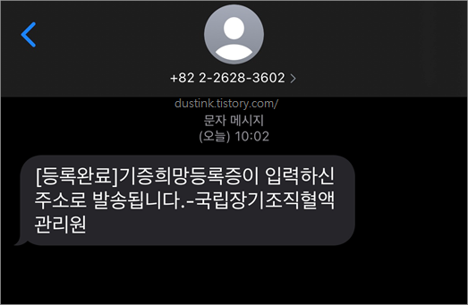 신청 일주일 정도 후에 일반 우편으로 장기/조직기증 희망등록증을 받는다고 한다.