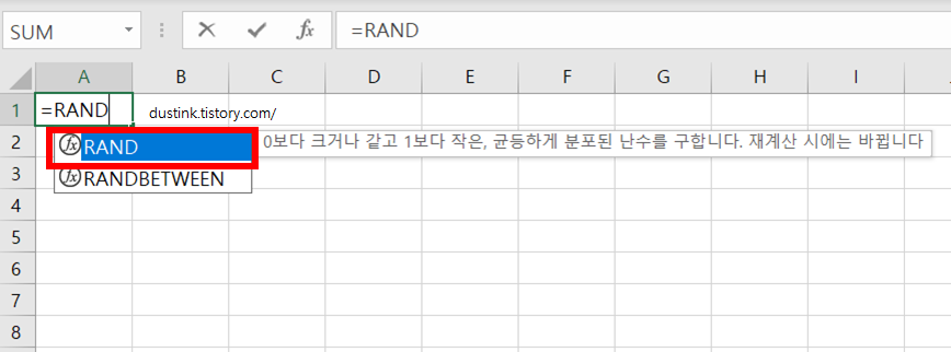 그러나, =RAND() 를 사용할 경우, '0 초과 ~ 1 미만'의 난수를 추출하는 RAND 함수의 특성 상