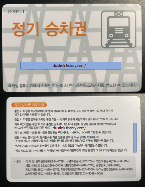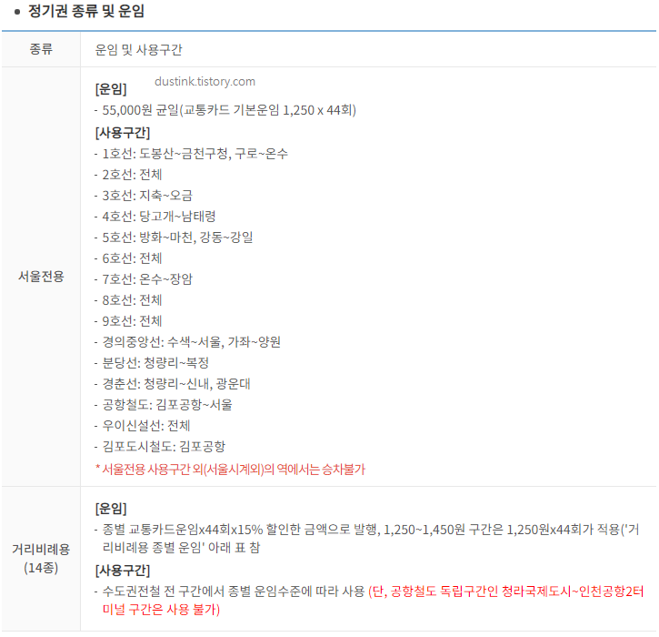 서울 전용 정기권은 서울시 안에 있는 역과 역 사이로 출퇴근/이동 할때 쓸수 있는 정기권이다.