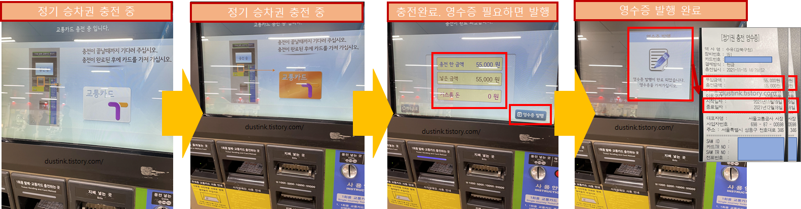 영수증을 보니, 충전금액과 시작일자 & 종료일자 모두 안내 되었다.