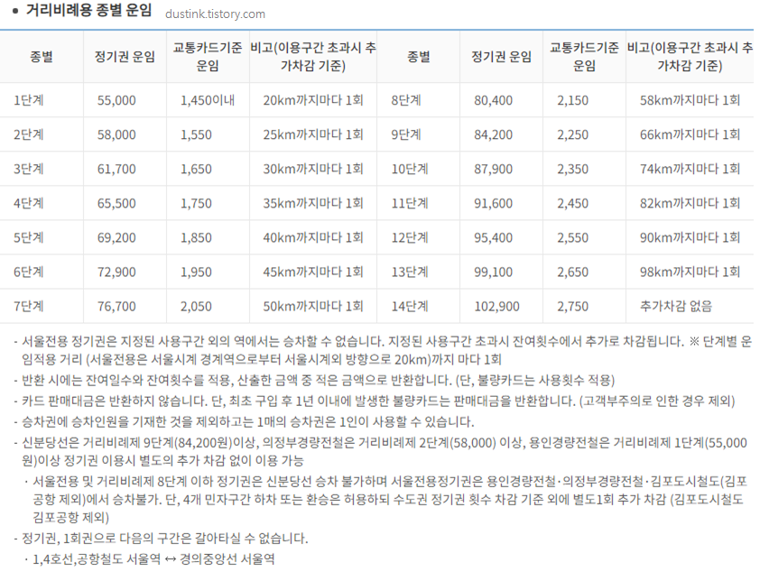 거리비례 정기권 (서울 이외 구간 사용)