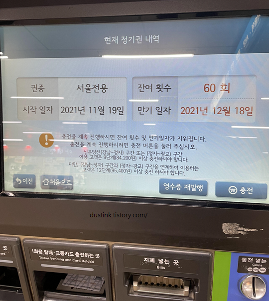 (정기권은 기계에서 구매 안되니 참고)