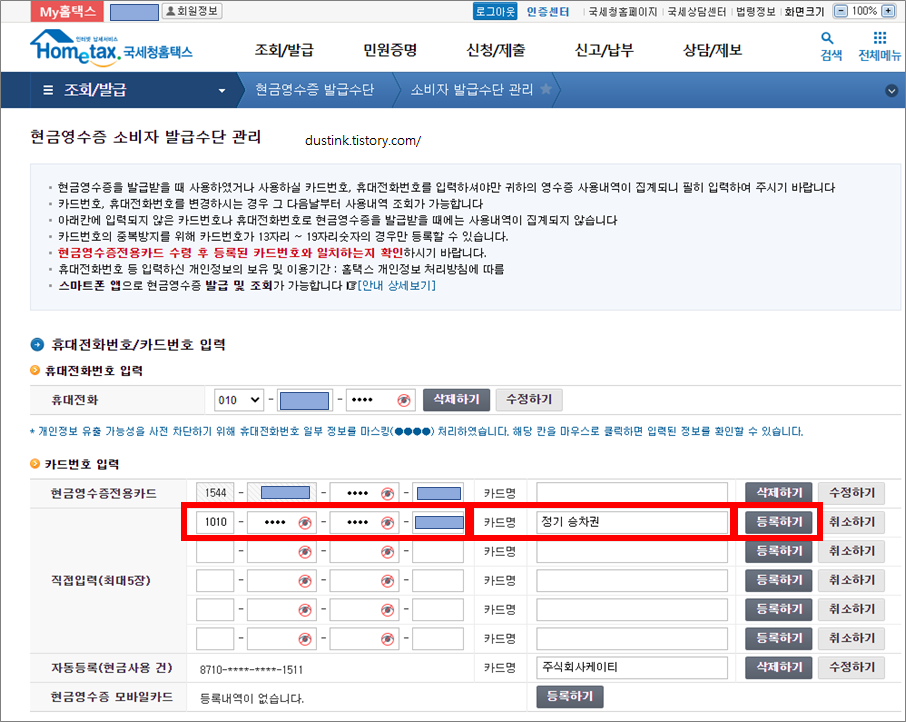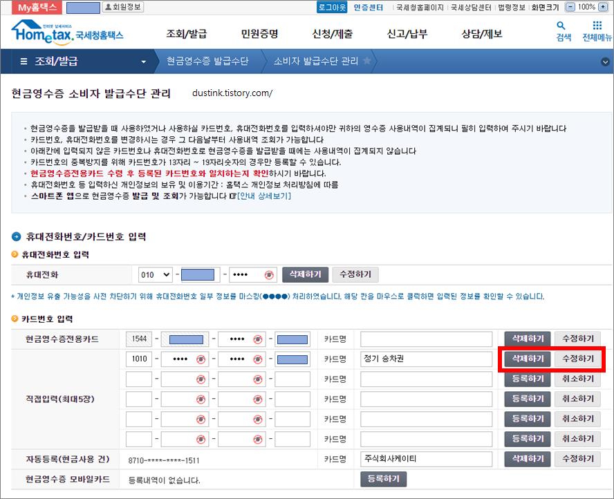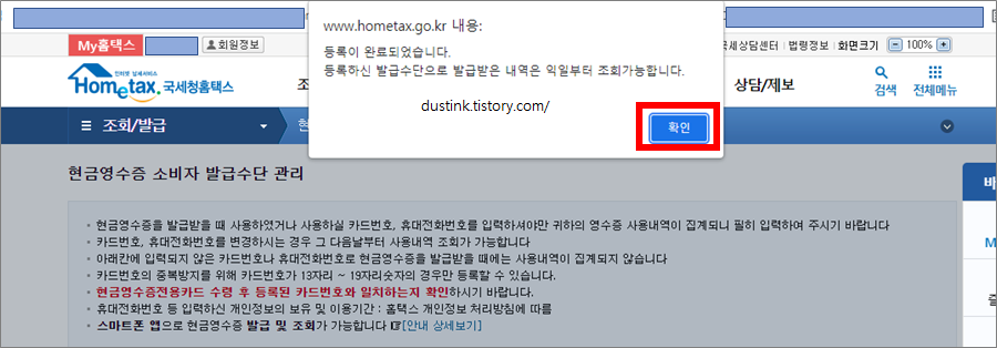 현금 영수증 등록은 국세청 사이트에서 한다.