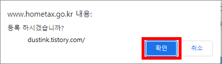 4. 등록창이 한번더 떠서, 확인 선택하면 된다.