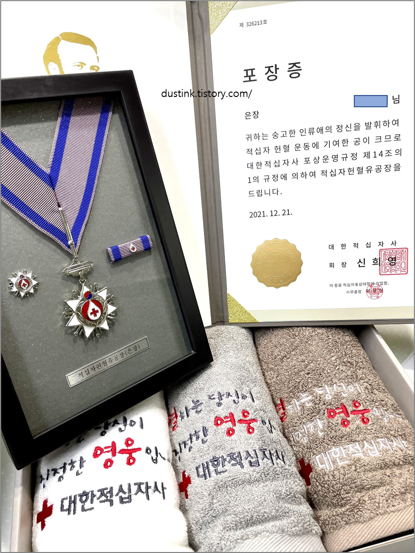 헌혈증 + 포장증 + 은장 + 부상품(수건(..?))