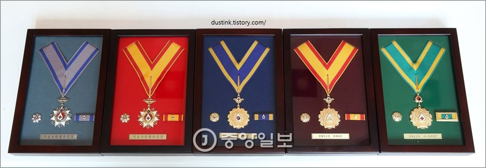 좌측부터 은장, 금장, 명예장, 명예대장, 최고명예대장 순서이다.