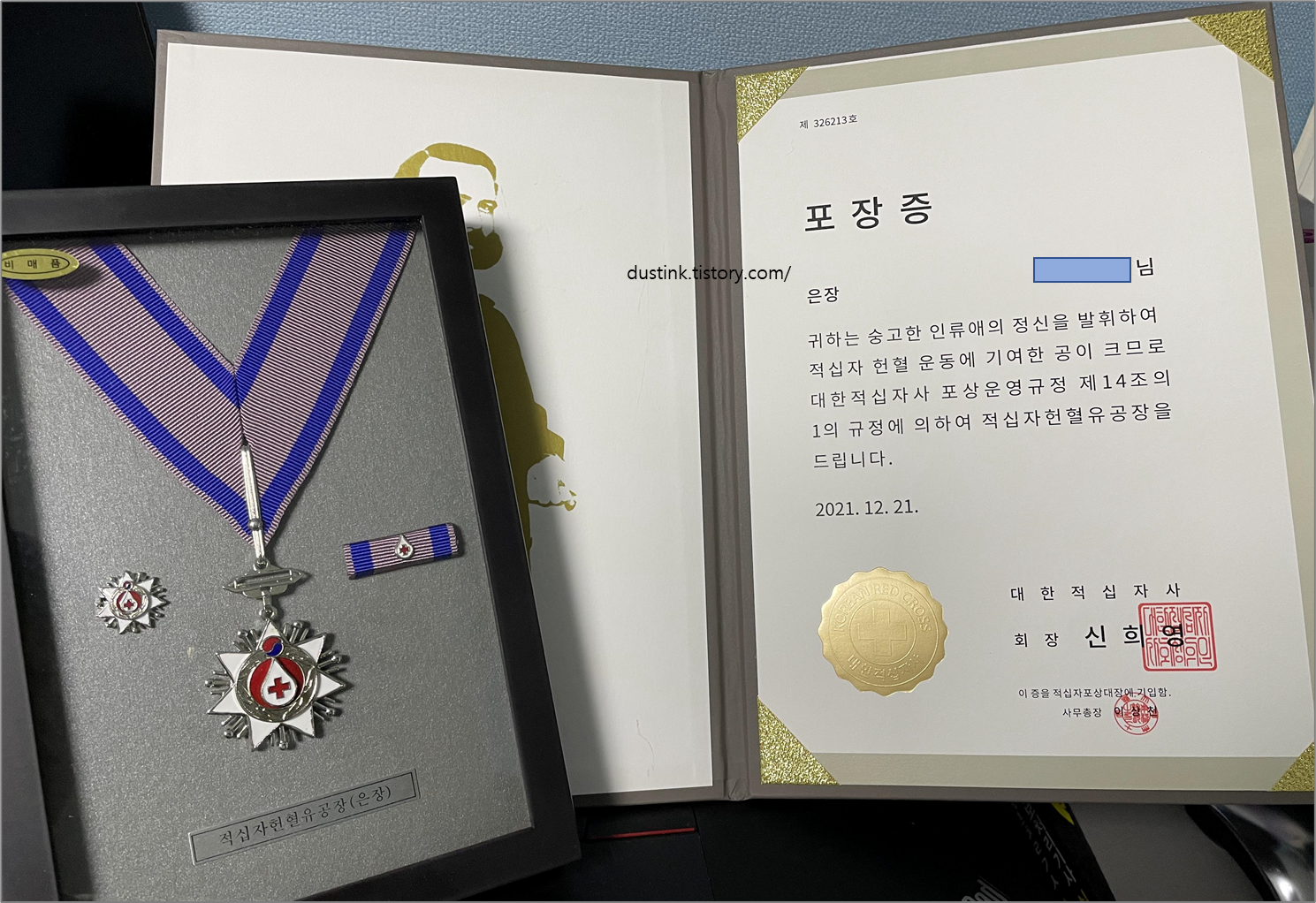 헌혈을 30회 하여 받은 은장과 포장증!