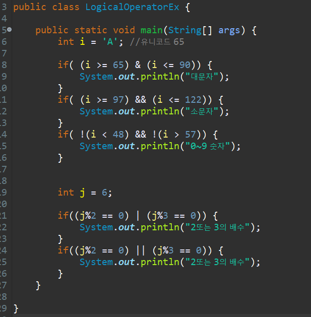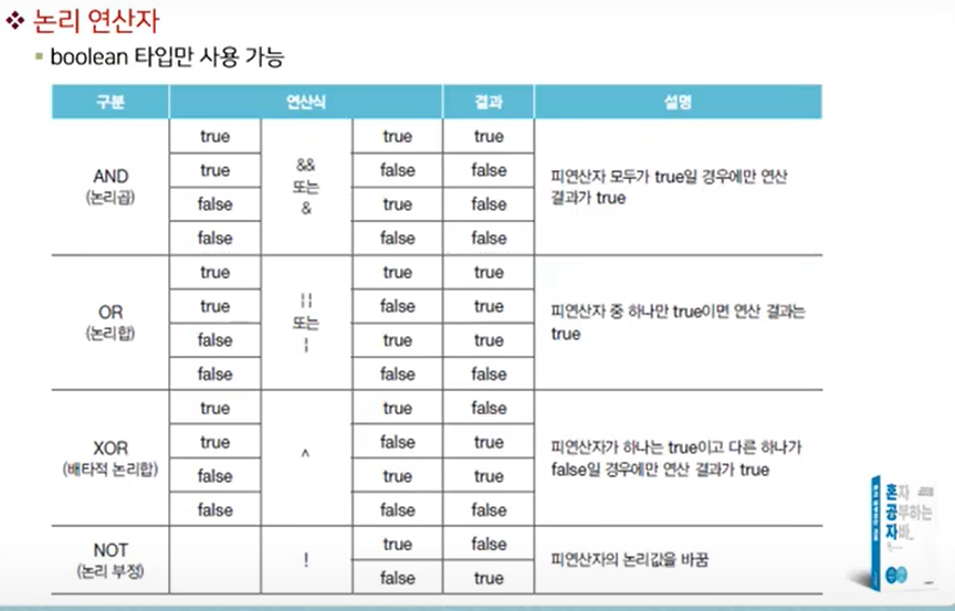 논리 연산자는 boolean 타입만 사용한다.