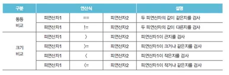 비교연산자는 흐름 제어문인 조건문(if), 반복문(for, while)에서 주로 이용되어 실행 흐름을 제어할 때 사용