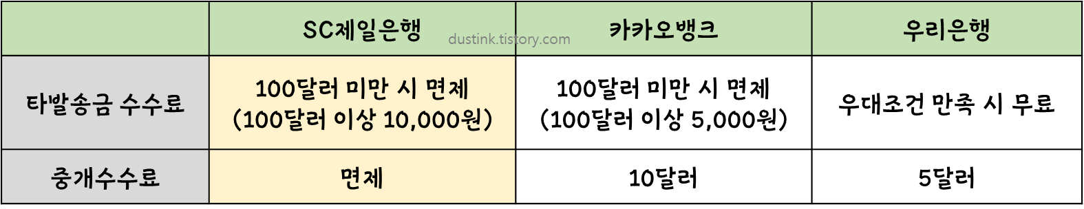 아숩게도 '$100 미만 부터 수수료는 발생된다.' 변경이 되어