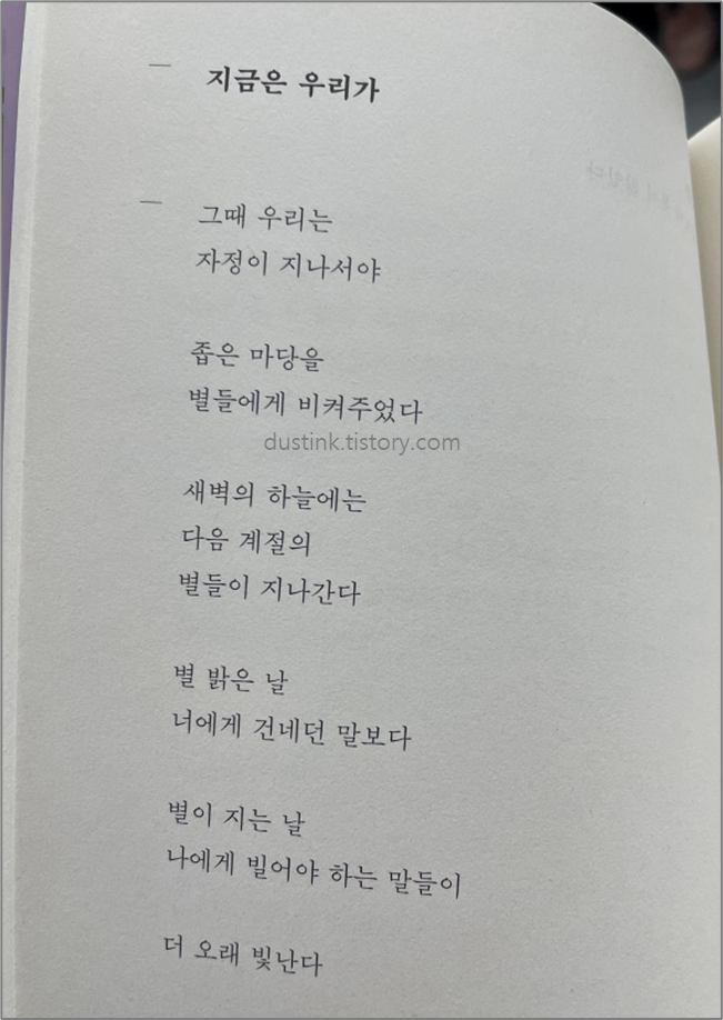 읽고서 코멘트를 남기면서, '후에 이런 내용의 책을 읽었구나', 혹은 좋았기에 추천을 하고 싶어 포스팅을 하지만, 이번은 책의 시 몇편을 포스팅하여, 느낀 감정을 공유하고 싶다.