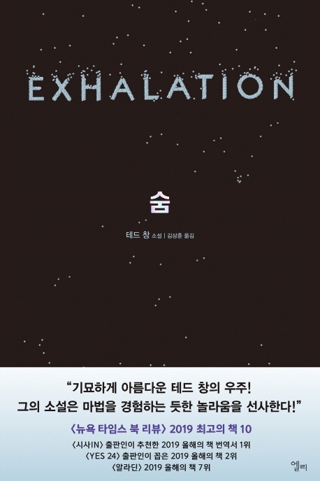 4번의 휴고상, 4번의 네뷸러상, 4번의 로커스상 등 최고의 SF에 수여되는 모든 상을 석권한 테드 창의 두 번째 작품집 『숨』. 《당신 인생의 이야기》 이후 17년 만에 펴내는 이번 소설집은 로커스상, 휴고상, 영국과학소설협회상을 수상한 표제작 《숨》을 비롯해 총 9편의 중·단편이 수록되어 있는 이 책을 통해 테드 창은 훌륭한 SF는 아름다움과 의미와 공감을 자아낼 수 있음을 증명해낸다.