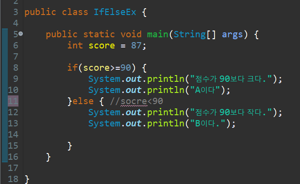 - if문은 조건식의 결과가 true, false 이냐에 따라 실행문이 결정