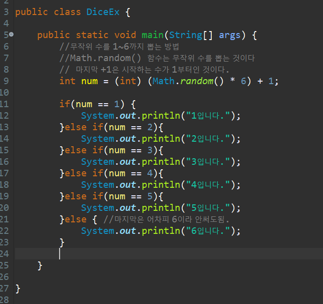 if문을 이용하여, 주사위 프로그램을 만들어 보자.