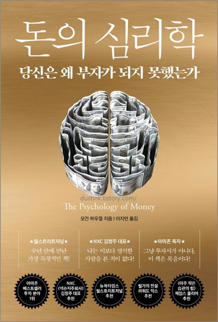 월스트리트저널에서 10년 넘게 금융과 투자에 대한 글을 써온 칼럼니스트이자 콜라보레이티브 펀드 파트너로 활동중인 모건 하우절의 첫 책이다. 출간 즉시 아마존 투자 분야 1위를 차지했고 개인 투자자부터 전문 컨설턴트까지 극찬 세례를 받으며 명실상부 ‘2020 아마존 최고의 금융도서’로 평가받는다.
