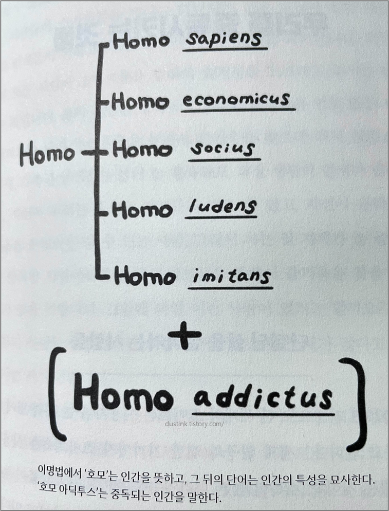 스마트 폰을 통해 사람들이 일상에서 자신의 보상회로 수시로 자극하고 중독에 빠지는 시대, 기업은 소비자의 중독을 활용해서 돈을 버는 시대. 호모 아딕투스 시대 라고 한다. 빅테크 기업들이 만든 중독 경제에 대해 《호모 아딕투스》는 소개하고 있다.