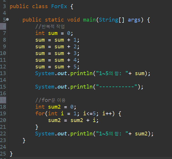 for문을 이용하는 것이 훨씬 편리하다는 것을 알 수 있다.