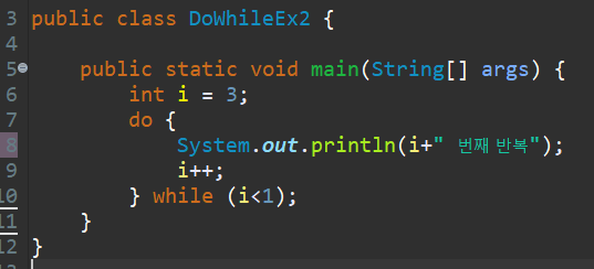 그러나, do-while은 실행문을 먼저 진행한다 했다.