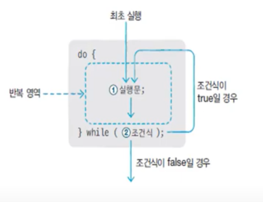 do-while문: 블록 내부의 실행문을 우선 실행하고 실행 결과에 따라서 반복 실행을 계속 할지 결정
