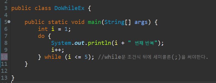 while문은 실행 되지 않겠지만, do-while은 실행하고 반복문을 종료 시킨다.