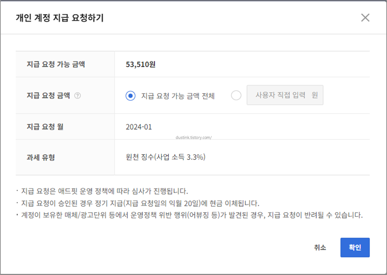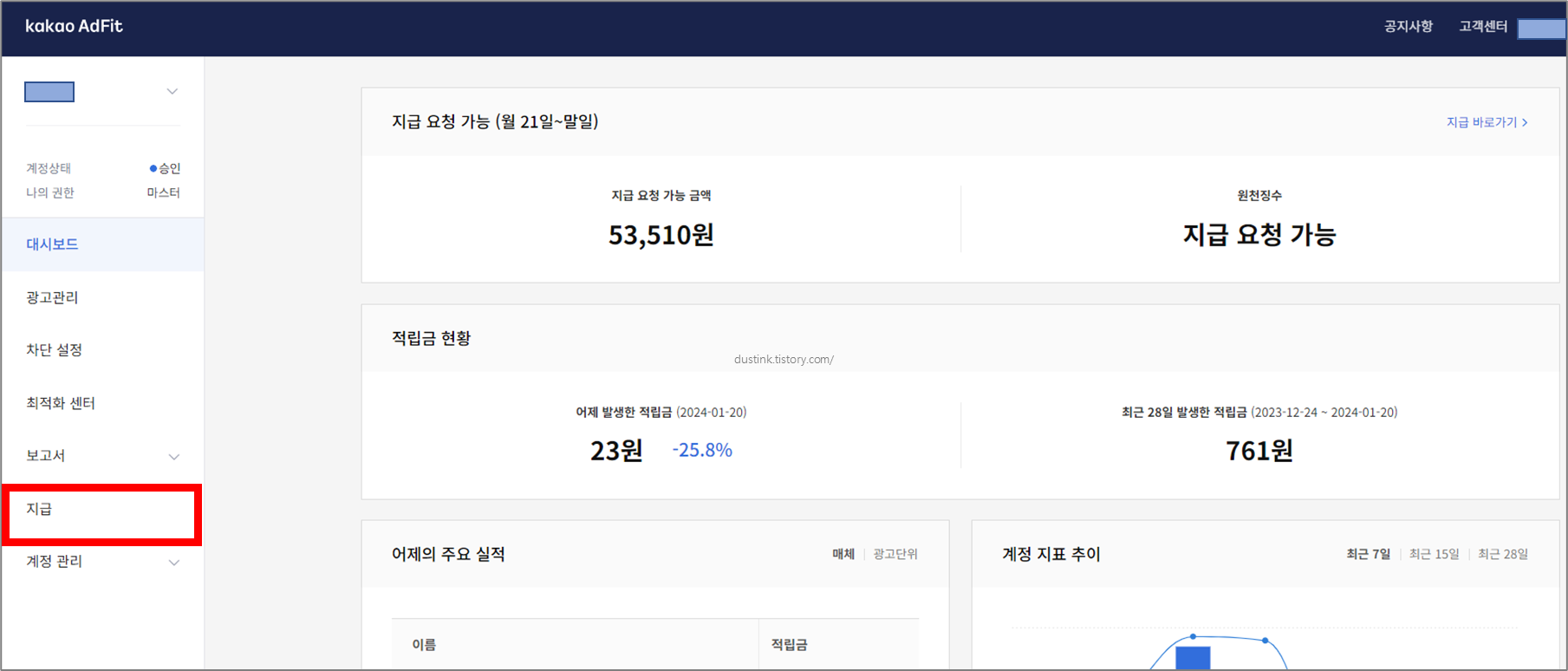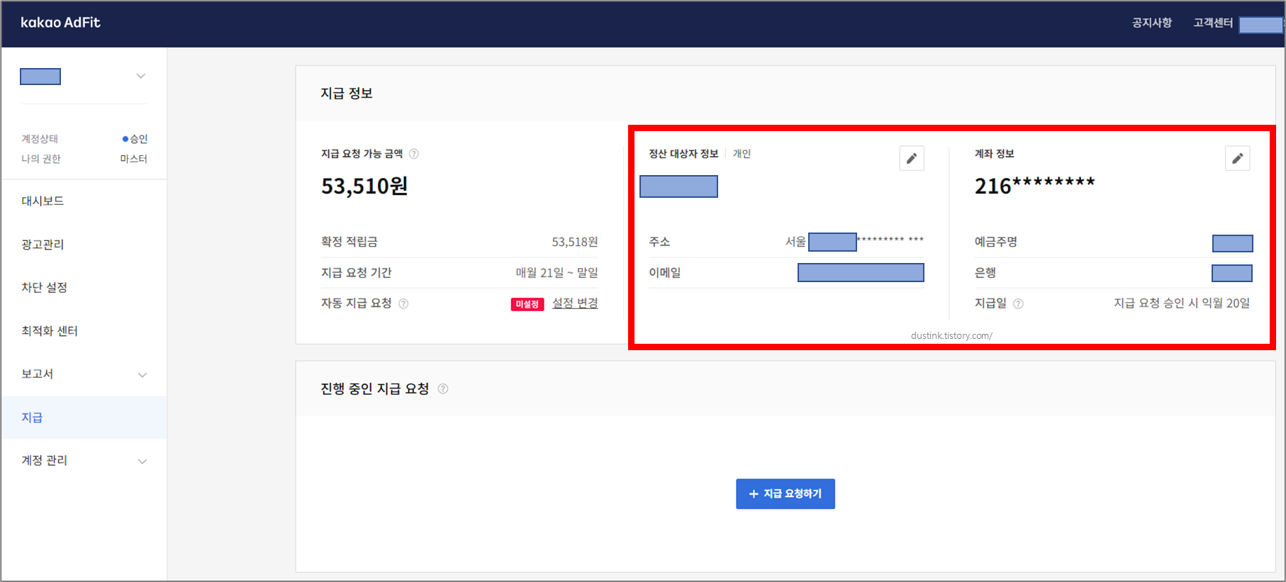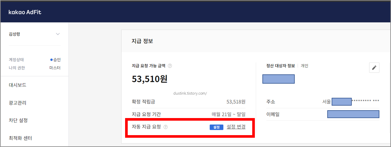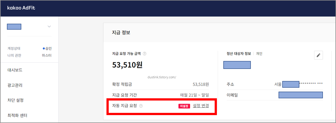 kakao AdFit 수익 지급 신청 일자 & 지급 일자