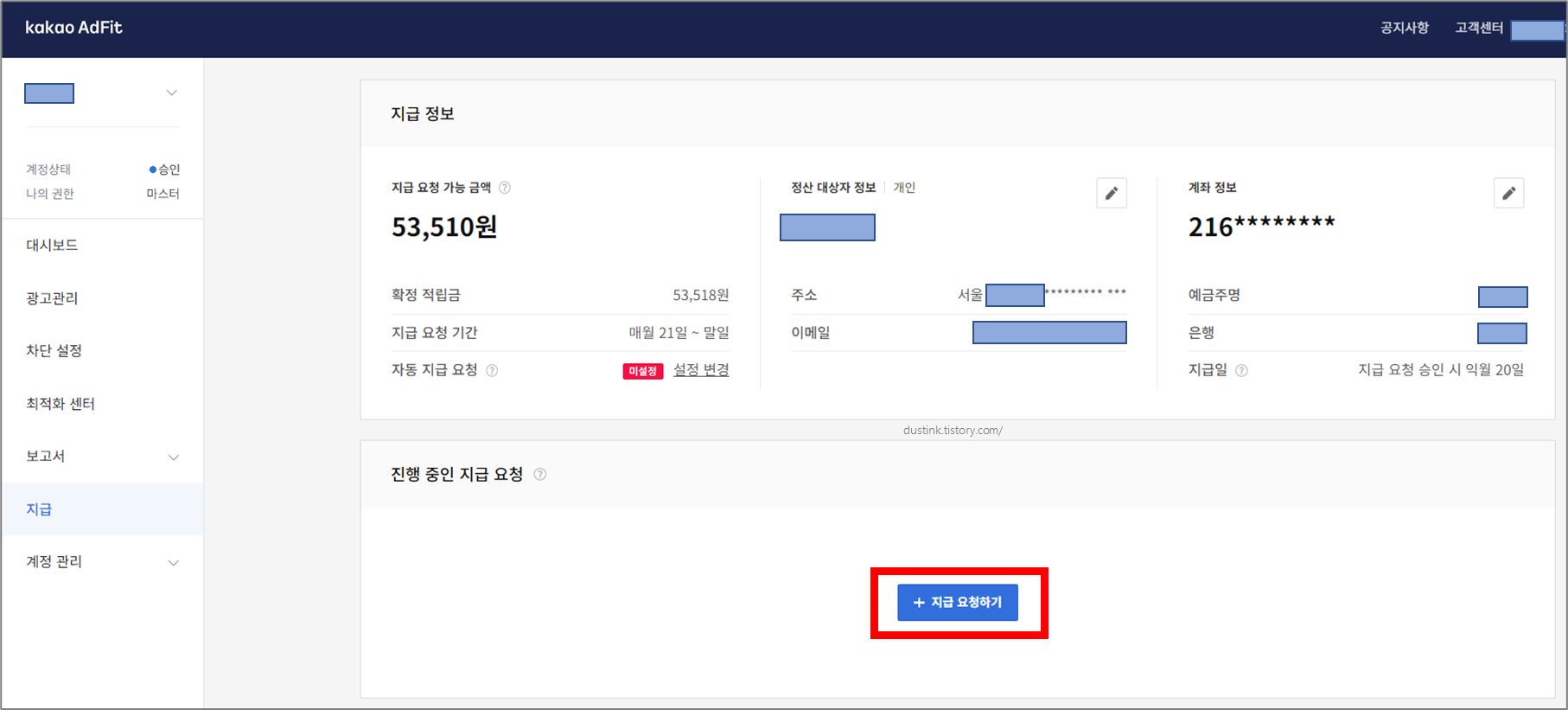 kakao AdFit 지급 요청