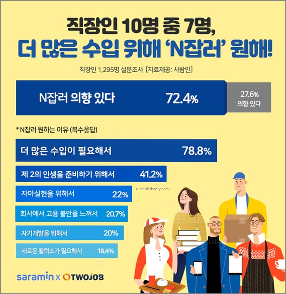 ; 2개 이상의 복수를 뜻하는 "N"과 직업을 뜻하는 "job", 사람을 뜻하는 "~러" 가 합쳐진 신조어