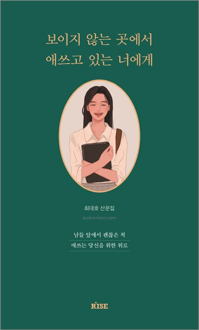 《보이지 않는 곳에서 애쓰고 있는 너에게》는 삶에 지친, 자존감이 많이 낮아지고, 여전히 본인의 삶의 물음표가 있는 사람들에게 따뜻한 위로의 한마디를 건데주는 에세이다. 나는 친구들을 만나고 이야기를 하고 술 한잔 하면서 스트레스를 푸는 타입이다. 뭔가 속시원하게 입 밖으로 다 내뱉고나면 조금은 기분이 나아지는 스타일이다. 가끔은 《보이지 않는 곳에서 애쓰고 있는 너에게》와 같이 마음이 차분하게 되는 책들도 좋아한다. 이런 책들의 장점은 책을 읽으면서 스스로 스트레스를 받았던 이유에 대해 많은 생각을 하게 되었고, 힘들었던 상황에 대해 심리치료를 받는 느낌이 들었다.