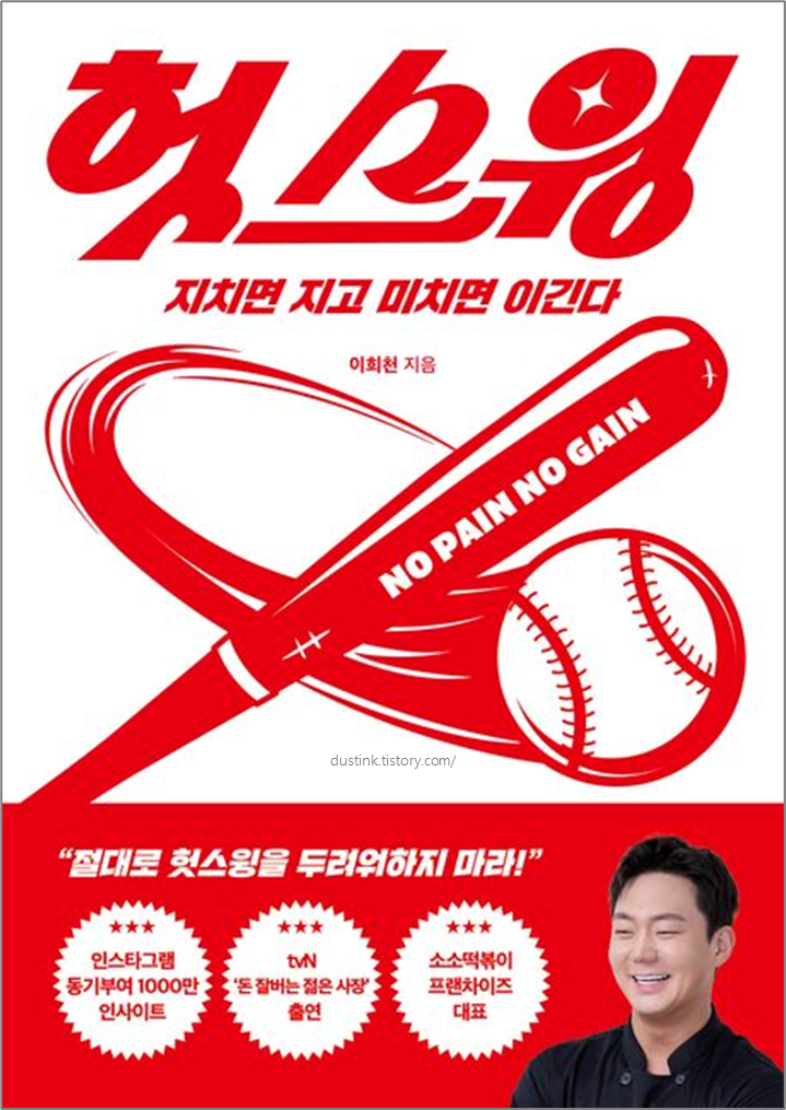 “원하는 걸 쟁취한 사람은 쪽팔리고 넘어져도 작은 시도를 멈추지 않은 사람입니다.” 저자인 이희천 작가는 현재 50개가 넘는 가맹점을 가지고 있는 소소떡볶이 프렌차이즈 대표다. 그는 바닥부터 처절하게 성장한 자신의 경험을 바탕으로 현재 많은 20~40세대에게 건강한 조언을 해오고 있다. 그의 조언은 다른 조언과는 달리 현실적이라 SNS에서 두꺼운 팬층을 보유하게 되었고, 자신감을 잃은 우리에게 도움을 주기 위해 가진 모든 인사이트를 응축해 『헛스윙』이라는 책을 집필했다. 저자는 이 책에서 홈런보단 헛스윙을 강조한다. 결과도 중요하지만, 시도 안에 있는 과정을 중요시 여기면 자연스레 성공궤도에 오를 수 있다는 말이다. 실패를 두려워해 시도조차 하지 못하고 있다면 이 책이 당신에게 새로운 배트를 쥐여줄 것이다.