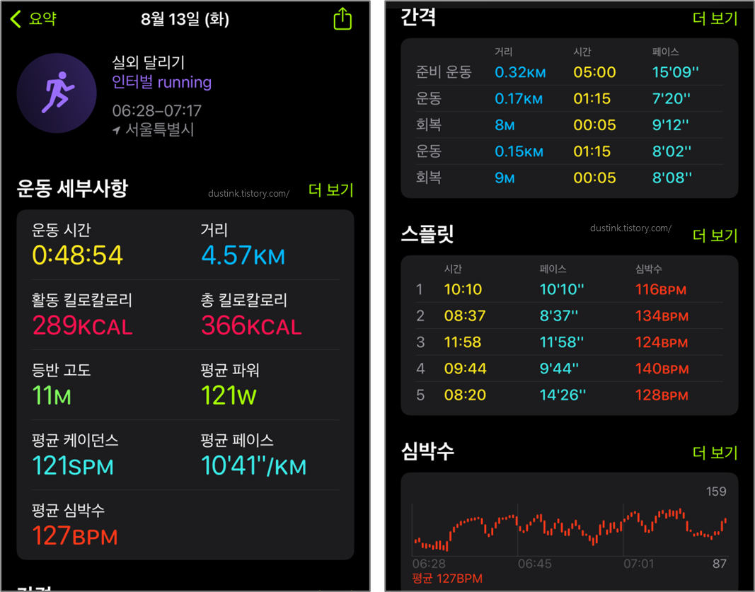 - 시간 분배를 잘못한거 같다. 3분정도 내리 뛸 수 있어서 걷기를 걍 넘겼더니 시간이 많이떠서.. 다끝나고 조금 더 뛰었다. 2-3분 뛰고 90초 걷고 루틴으로 스을 적용해도 좋을 듯 하네.