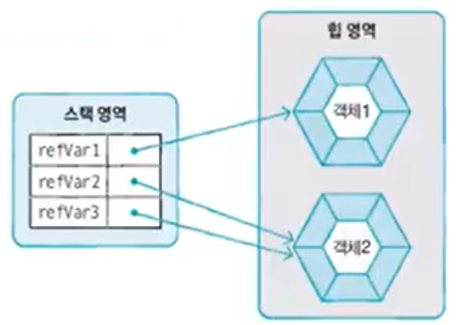 - 참조타입 변수는 메모리의 번지를 변수 안에 저장 한다. 번지를 통해 객체를 참조하여 사용된다.