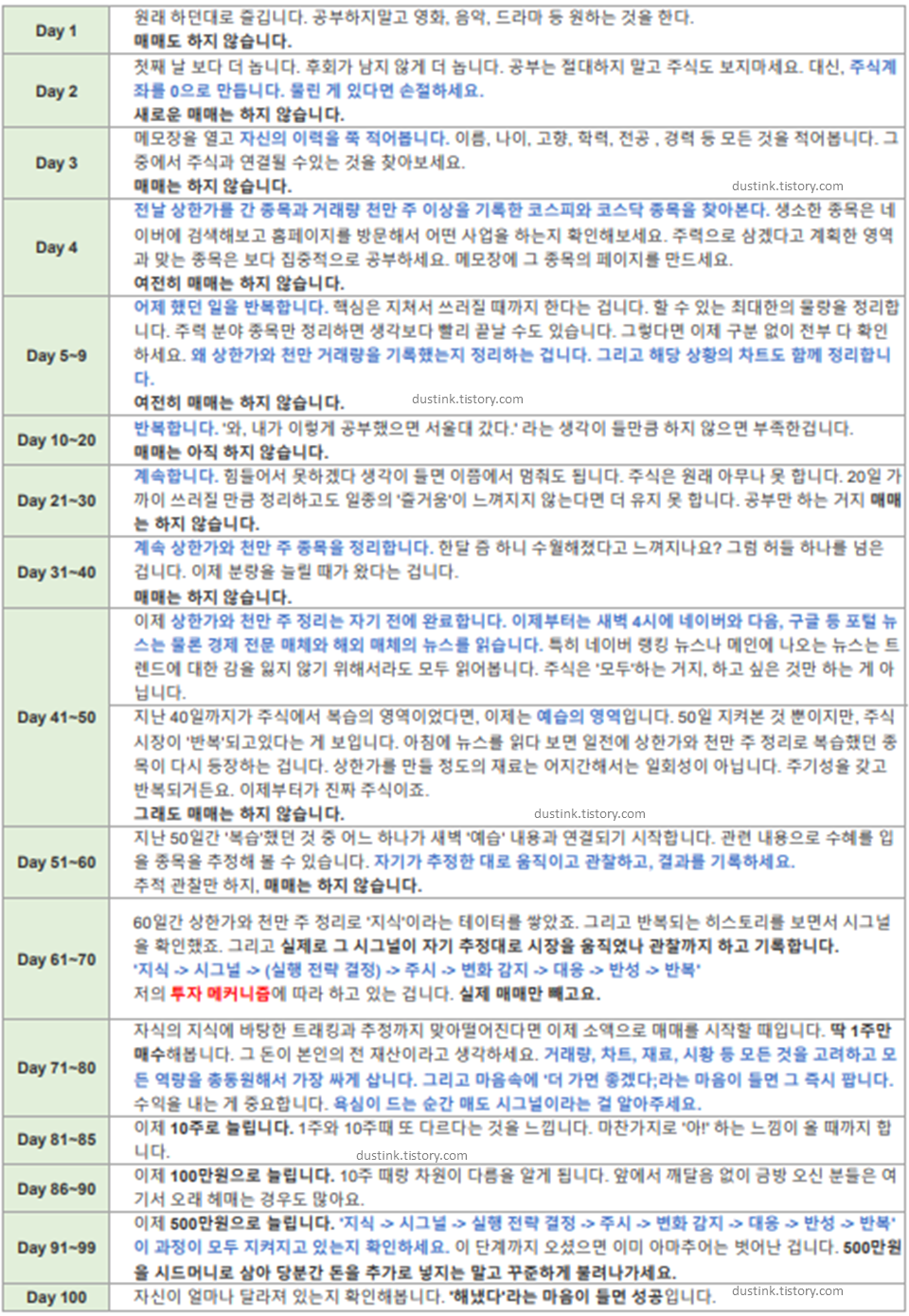 모든 상황을 다 공부 해야한다고 저자는 설명한다. 어떤 상황에 어떤 종목이 오를지 내려갈지 모르기 때문이다. 그래서 '매일 관찰'이 필요하다. 상한가와 천만 주 거래량을 기록한 목록들을 매일 정리하다보면 매수를 할 시점인지 알 수 있을 것이다.