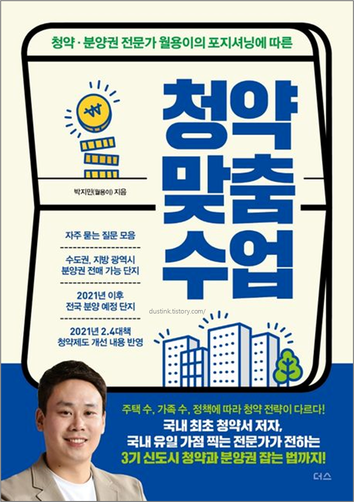부동산 정책은 매 해, 매 분기 변경이 된다. 이 책은 2021년 출간 되었지만, 20년에 저서를 했으므로 최근의 정부 정책과는 상이하다. 그만큼《청약 맞춤 수업》은 처음 청약에 관심을 갖게 된 사람들에게 참고할만한 책이지, 정책까지 참고하여 '이렇게 준비하면 되겠구나.' 생각하면 안된다. 실제로 많은 정책이 변경되었고, 청약에 대한 대출, 금리 등 정보는 이 책에 없다. 그러니 현재 정부의 정책과 규제를 확인하고 본인에게 맞는 청약 물건을 신청하길 바란다.