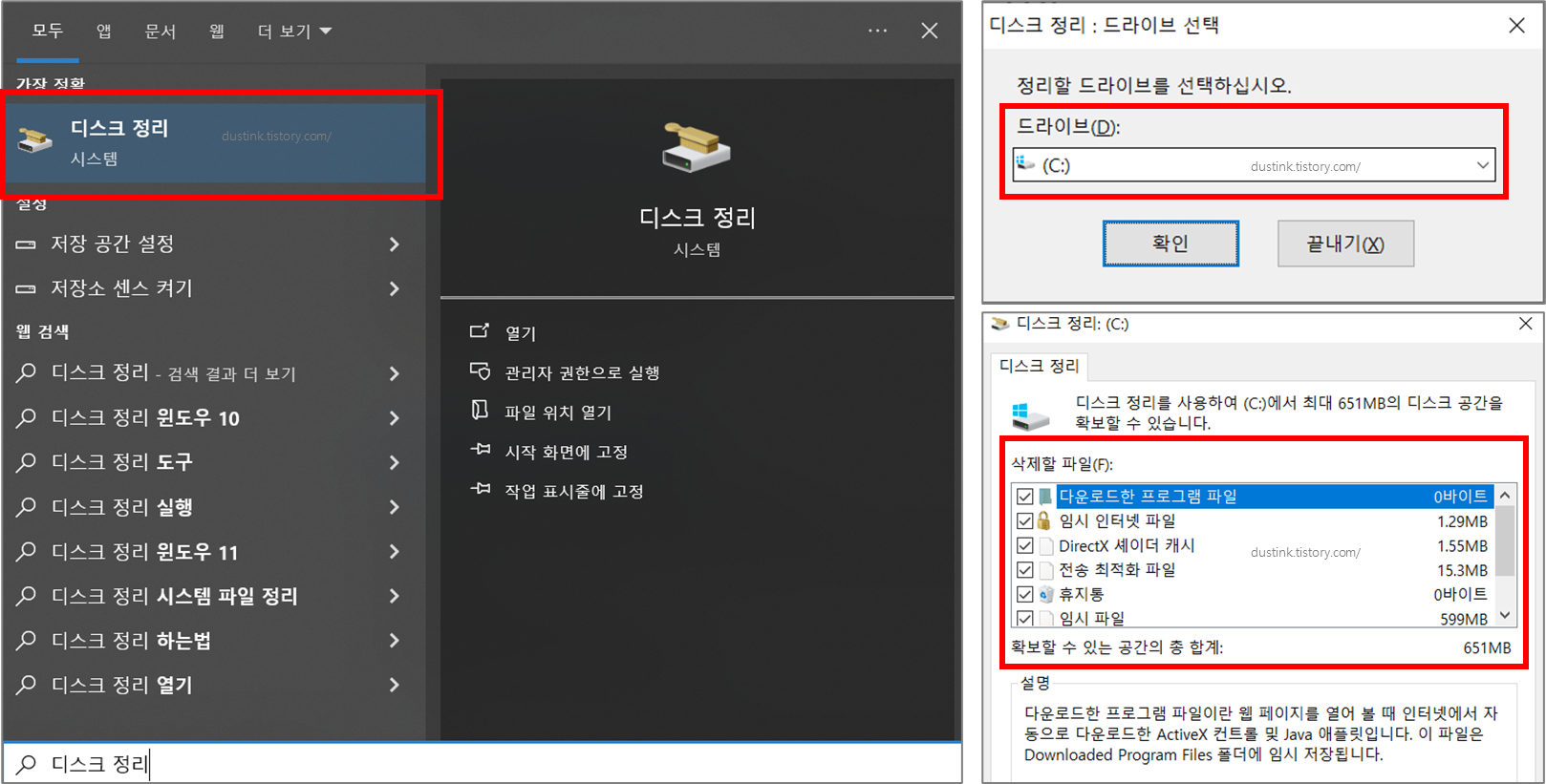- 어디서? 파일 탐색기 > 드라이브 > 속성 > 디스크 정리