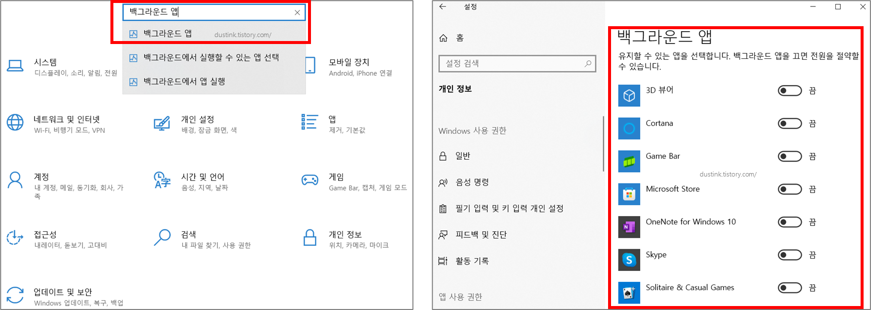 - 어디서? 설정 > 개인정보 보호 > 백그라운드 앱