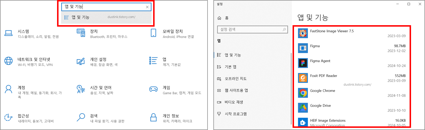 - 어디서? 설정 > 앱 및 기능