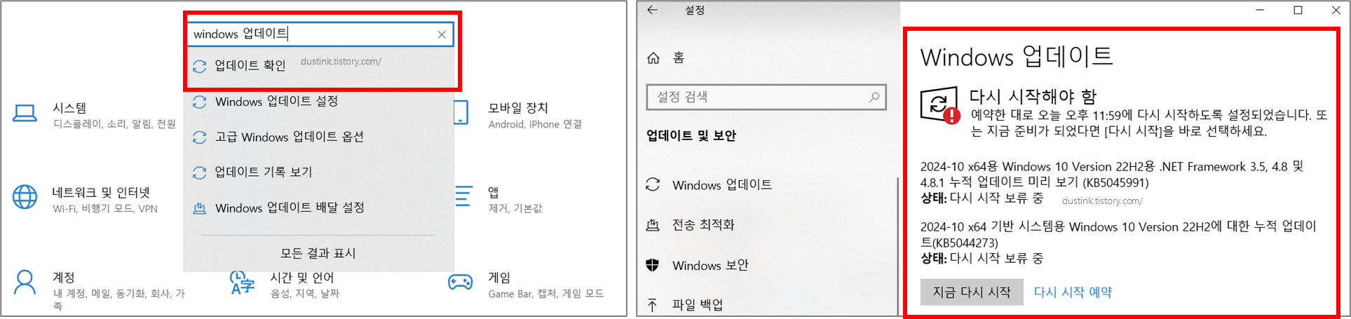 - 어디서? 설정 > 업데이트 및 보안