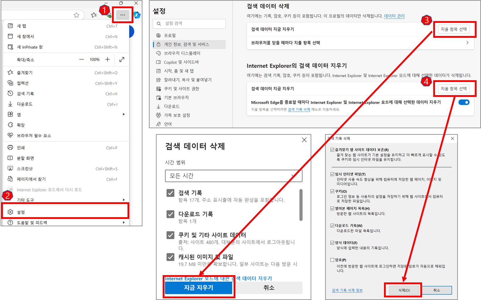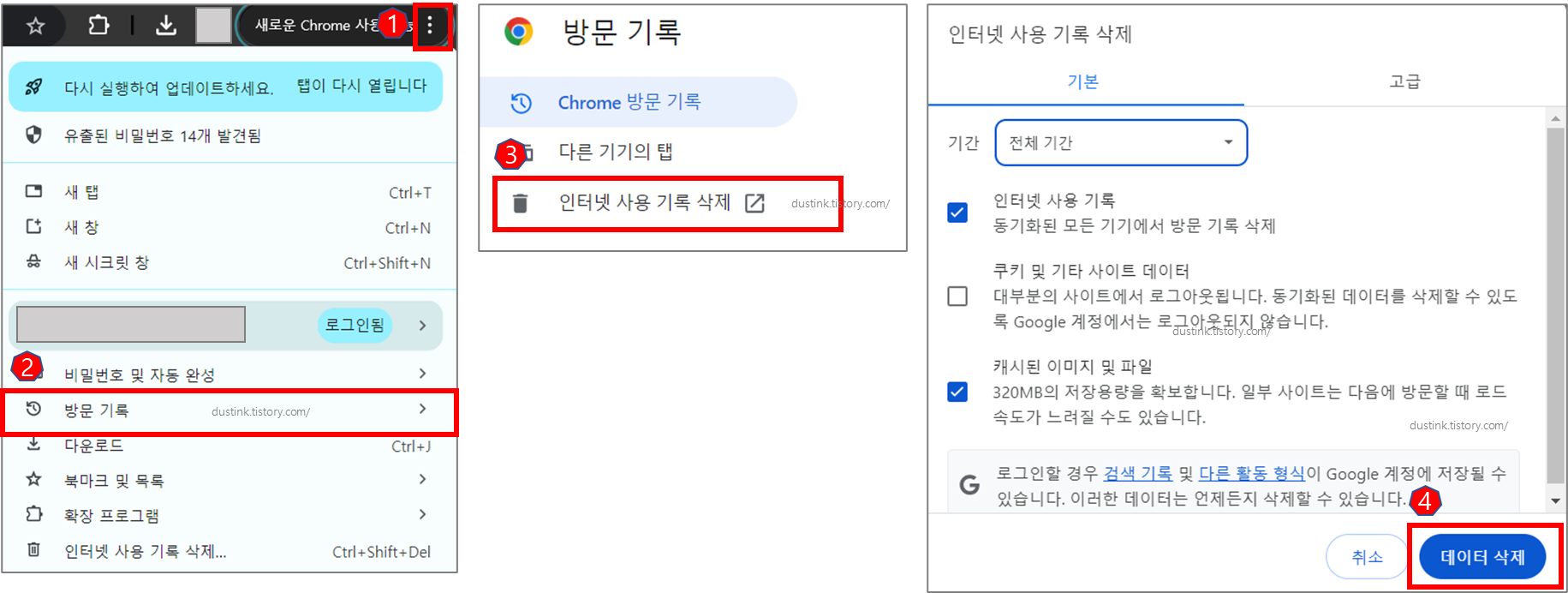 - 어디서? 브라우저 설정 > 히스토리 또는 캐시 삭제