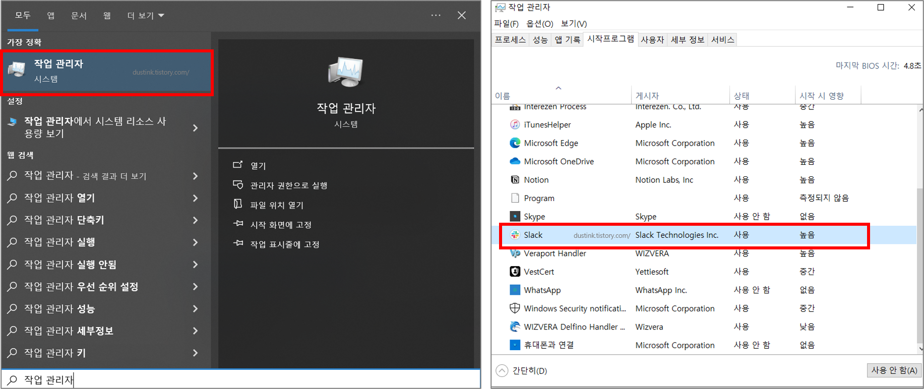 - 어디서? 작업 관리자 > 시작 프로그램