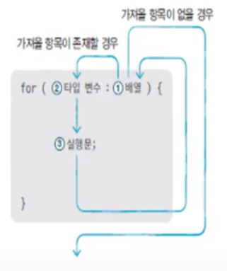 - 향상된 for문: for(타입 변수 : 배열) { ... }