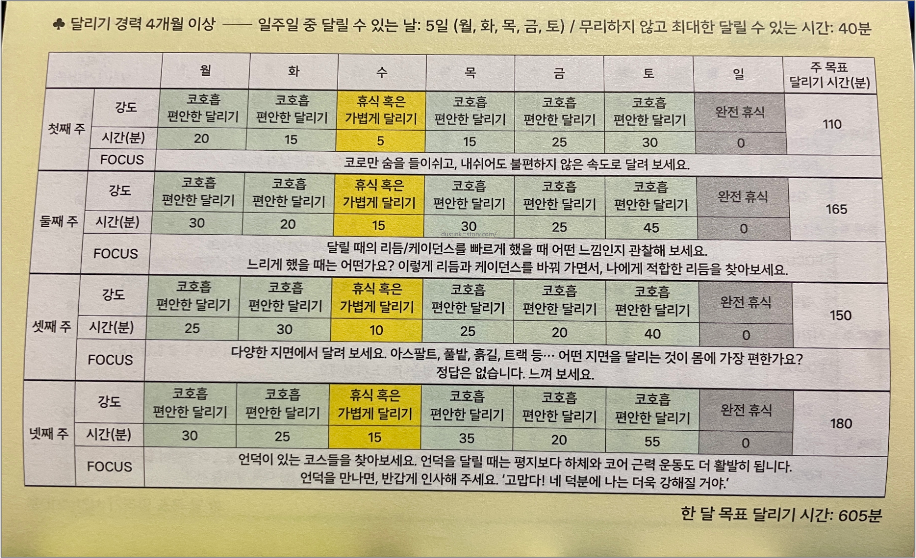 5분씩 뛰는 것에 어느정도 적응이 된다면 《30일 5분 달리기》에서 소개하는 방법도 한 번 따라해보는 것을 추천 한다.