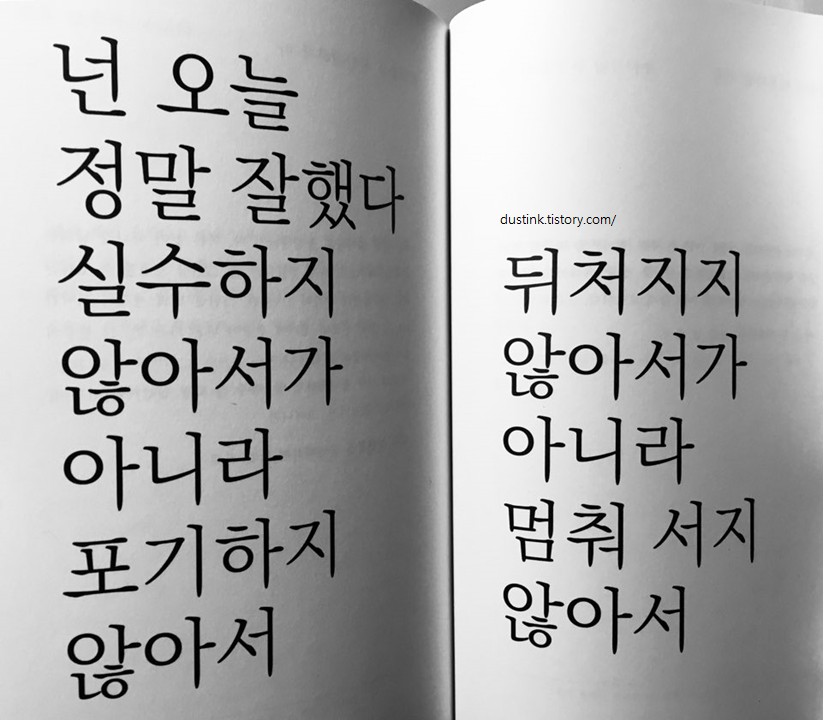 넌 오늘 정말 잘했다. 실수하지 않아서가 아니라 포기하지 않아서.