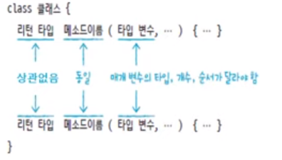 - 리턴 타입만 다리고 매개 변수가 동일한 경우 오버로딩이 아니다.