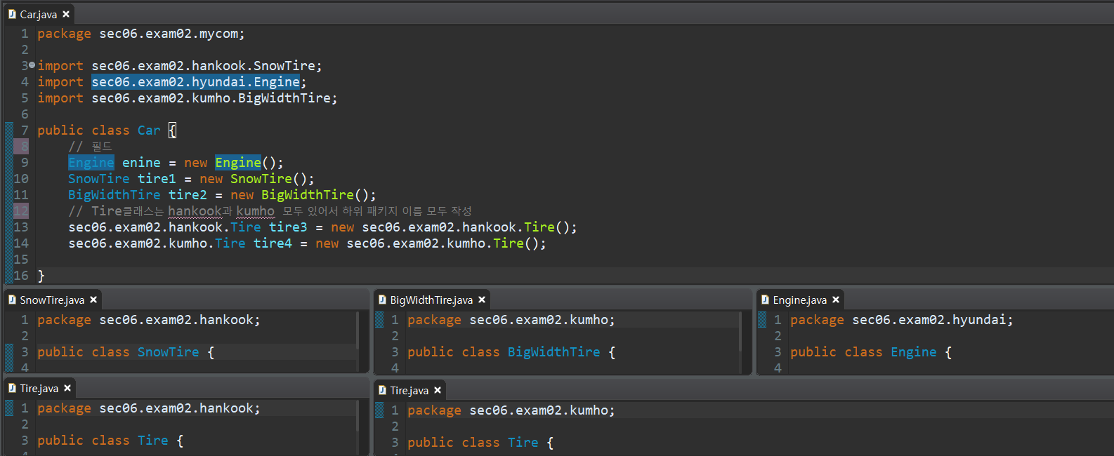 sec06.exam02.kumho.Tire tire4 = new sec06.exam02.kumho.Tire();
