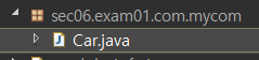 sec06 패키지 > exam01 패키지 > com 패키지 > mycom 패키지 > Car.java 클래스
