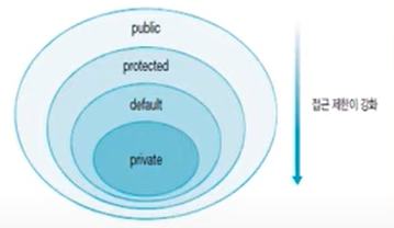 | private | 필드,생성자,메소드 | 모든 외부 클래스 |